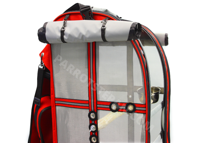 Рюкзак-переноска для ары с боковыми стенками из металлической сетки.